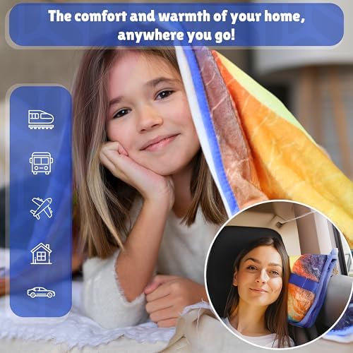 Ultimate Travel Blanket Pillow – use it as a neck pillow or a blanket, it will be.your perfect companion for comfort on the go. Crafted with premium, ultra-soft materials, this versatile travel accessory is designed to enhance your travel experience whether you’re in the car, camping under the stars, or soaring through the skies. Keeps you warm and cosy – this airplane blanket is made from luxurious, breathable fabric that feels gentle against your skin, ensuring maximum coziness and warmth without overheating. Its generous size provides ample coverage, keeping you snug and comfortable in any setting. The neck pillow offers optimal neck and lumbar support, reducing strain and allowing you to rest comfortably in any position. You will never leave it behind! – this compact and lightweight travel blanket pillow is easy to pack and carry, making it a travel essential. Its thoughtful design includes a convenient soft cover, luggage sleeve and clip, allowing you to effortlessly take it anywhere your adventures lead. Travel like never befoere – whether you’re embarking on a long car trip, a camping expedition, or a flight to an exciting destination, the Ultimate Travel Blanket Pillow ensures you arrive feeling refreshed and relaxed. Embrace the comfort and elevate your travel experience with this holiday essential. Hassle-Free Cleaning – keeping your airplane blanket pillow fresh and clean is a breeze. Simply toss it in the washing machine and tumble dryer. Enjoy the convenience of effortless maintenance, so it’s always ready for your next adventure.