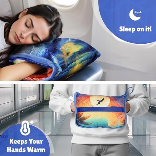 Hassle-Free Cleaning – keeping your airplane blanket pillow fresh and clean is a breeze. Simply toss it in the washing machine and tumble dryer. Enjoy the convenience of effortless maintenance, so it’s always ready for your next adventure.