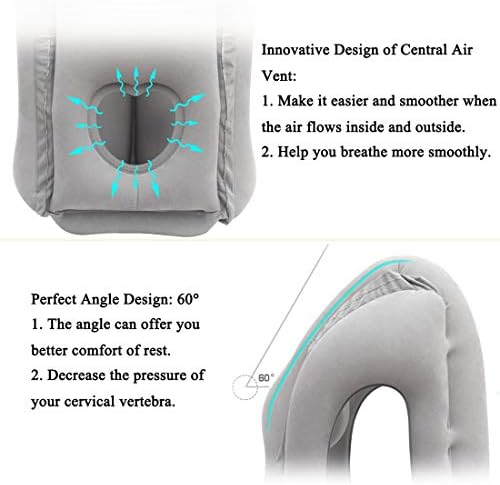 Unique design: the unique design of the inflatable travel pillow is according to the curvature of human neck, which supports jaw closely and clings to the physiological curve of head, neck and chest, and to reduce the cervical pressure.