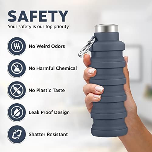 Collapsible Water Bottle UK Brand Silicone Travel Essential Foldable Gym Bottle Leakproof Hiking Accessories 500ml