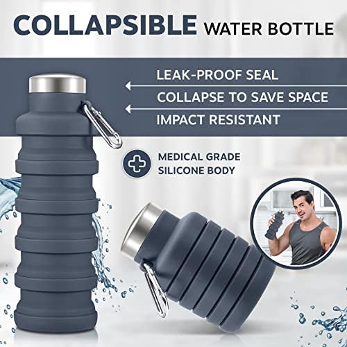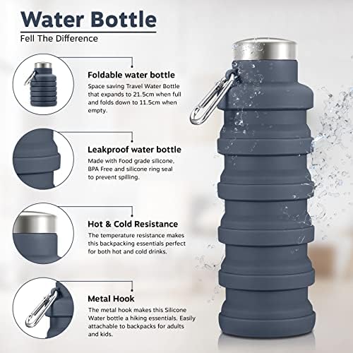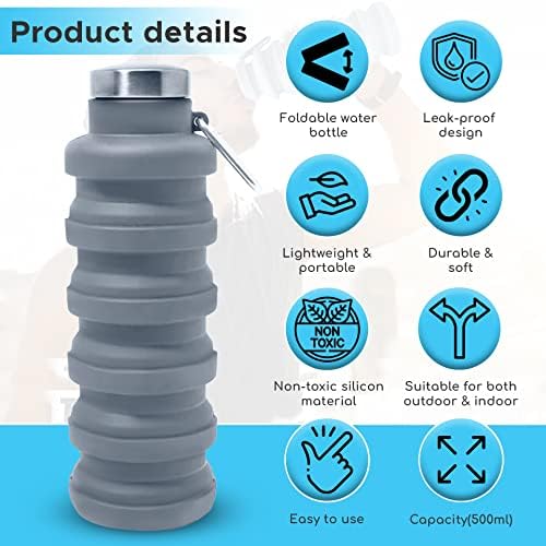 Take Anywhere: Collapsible water bottle 500ml, Convenient to carry, small and stylish, curly storage, can be put in bags, suitable for carrying around, instead of disposable cups, one-handed grip, easy to take- for running to the gym, sports, camping, outdoor activities, and perfect for airport travel