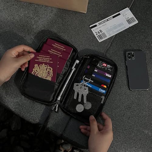 𝐒𝐭𝐚𝐲 𝐎𝐫𝐠𝐚𝐧𝐢𝐳𝐞𝐝 𝐰𝐢𝐭𝐡 14 𝐏𝐨𝐜𝐤𝐞𝐭𝐬, 𝐏𝐞𝐧 𝐒𝐥𝐨𝐭 & 13𝐱23𝐱3𝐜𝐦 𝐨𝐟 𝐒𝐦𝐚𝐫𝐭 𝐒𝐭𝐨𝐫𝐚𝐠𝐞: Designed for Maximum Convenience, Enjoy quick and easy access to all your essentials with a travel document wallet that features a front phone pocket, a zippered pocket for valuables, nine card slots, and a large cash pocket.