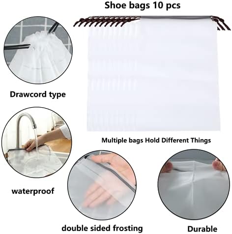 Transparent Shoe Bags Suitable for packing leather shoes, children’s shoes, flip-flops, sports shoes, high heels, even clothes, underwear, handbags, wallets, towels, socks. shoe bags to protect your belongings from scratches and scuffs when storing, while having a good dustproof effect.