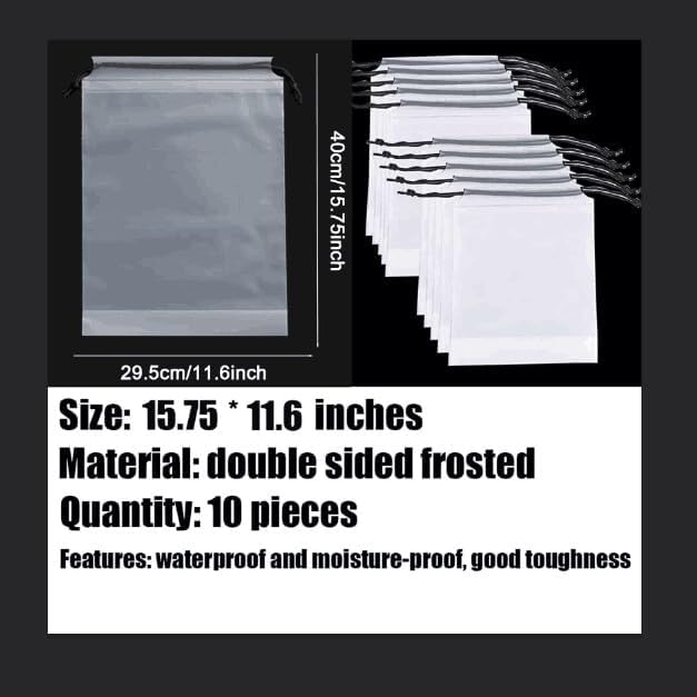 1.Dust Bags For Shoes Made of high quality EVA material, it is dustproof, waterproof and reusable, with a drawstring design for daily use.The transparent colour allows you to see the contents of the bag without opening it