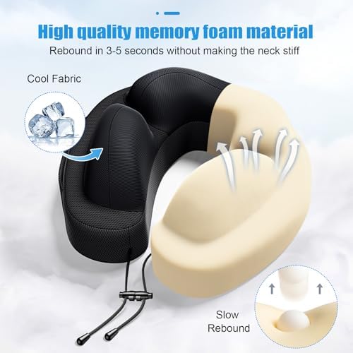 【Cooling fabric】The travel neck pillow is made of 100% memory foam and equipped with a cooling ice silk fabric. The comfortable and breathable fabric prevents your neck from overheating and sweating, keeping it cool and clean for a long time.