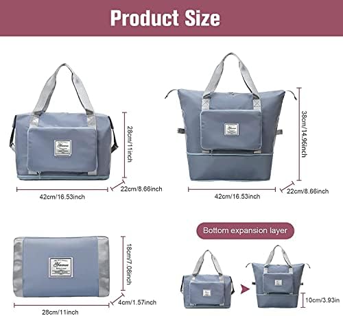 Foldable & Bottom Extension Design: This large capacity folding travel bag can be folded or expanded in three sizes at the bottom according to your needs. Travel needs large capacity size H*W*L:38cmx22cmx42cm; Daily Satchel bag use size H*W*L:28cmx22cmx42cm; Easy to carry and folded size H*W*L:18cmx4cmx28cm; three sizes to meet all your needs