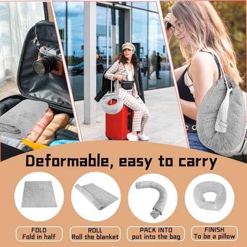 Perfect for Travel: This travel blanket measures 32×53 inches, which is lightweight and cozy to keep you warm on the travel. When it turns into a neck pillow, it can support your neck and give you a better rest during the journey.