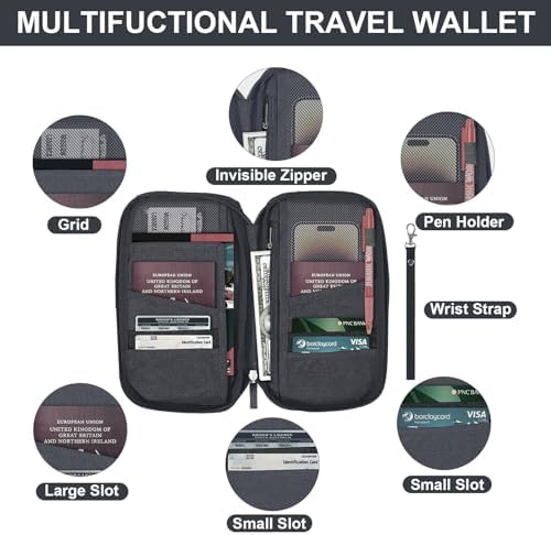 【Wide Application】Our travel organiser wallet features a detachable wrist strap and fixed side straps, you can simply hang it on your wrist or carry it. It is suitable for family travel, camping, business travel, etc.