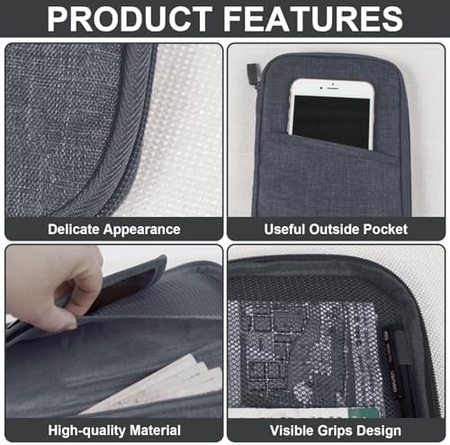 Passport Holder Travel Wallet, Large Capacity Travel Document Holder, RFID Blocking Waterproof Portable Travel Wallet Organiser for Cash Passport ID Card Credit Cards Flight Ticket Pen, Grey