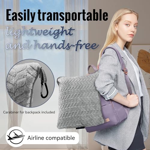 CONNECTS TO YOUR SUITCASE OR BACKPACK: You can quickly and simply attach the carrying case to your suitcase using the hand luggage sleeve located at the back of the case. The travel blanket can also be fastened to any backpack or luggage using the backpack clip and carabiner that are included.