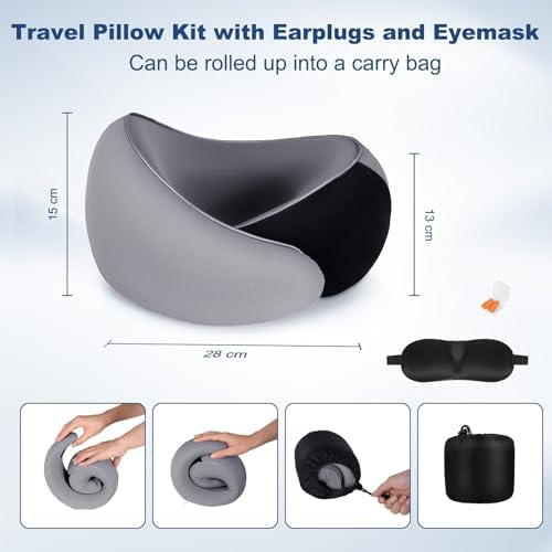 ✈️Portable Travel Accessories: Our travel pillow conveniently rolls up into a storage bag and comes with earplugs and eye masks, making it perfect for use during airplane, train, or car travel, as well as in the office or at home for a rejuvenating rest.