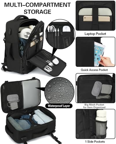 【Multiple Pockets & Well Organized】The cabin bag features 2 main compartments including a main compartment like suitcase perfect for daily necessities such as clothes, notebooks, etc.And a separate laptop compartment that fits up to 14 inch laptop.Additionally,1 front pocket can organize small items conveniently.There are also waterproof pocket, mesh pocket, hidden pocket, and side pocket distributed in different compartments.
