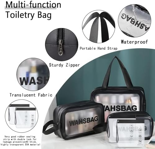 【Reinforced Zipper】The metal zipper with large opening at the top is very convenient and slides smoothly. You can take out items easily. The zipper is very strong and long-lasting, making this toiletry bag reusable. Simply wipe it with a damp cloth to make it look brand new