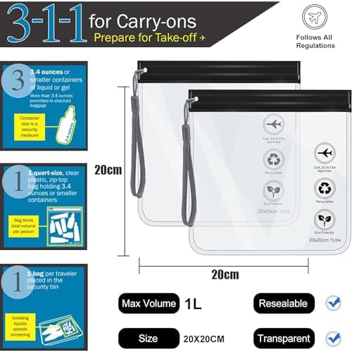 【A Set of 5 Cosmetic Bags】This clear travel bag includes 5 different sizes of cosmetic bags: one large cosmetic bag, one medium cosmetic bag, one small cosmetic bag and two airport approved leak-proof liquid bags. The different sizes of cosmetic bags are enough to meet your different needs
