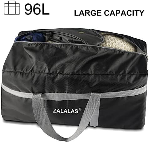 【LARGE FOLDABLE DUFFLE】The ZALALAS foldable duffle Bag external dimension is 75x30x40cm/30x12x16 inches (L x W x H) with 96Liters capacity, Portable and lightweight to take alone. In addition, it can be folded into a small size only 23x20cm/ 9x8inches ( L x W ) pocket for easy storage and carrying.
